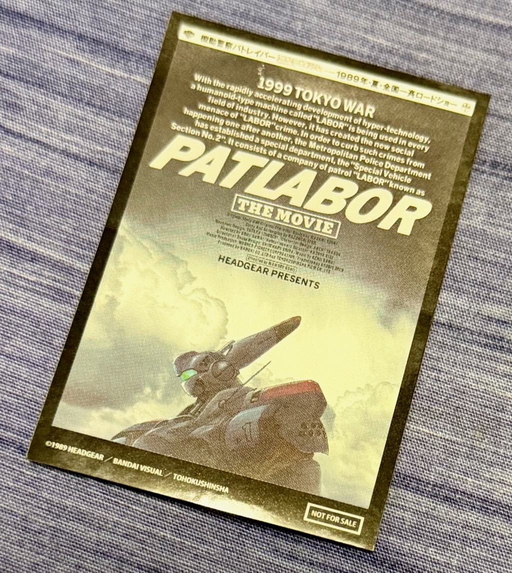 台風が近づく中、機動警察パトレイバーのリバイバル上映がやっていたので観に行ってしまった。入場特典のステッカーをゲット。
