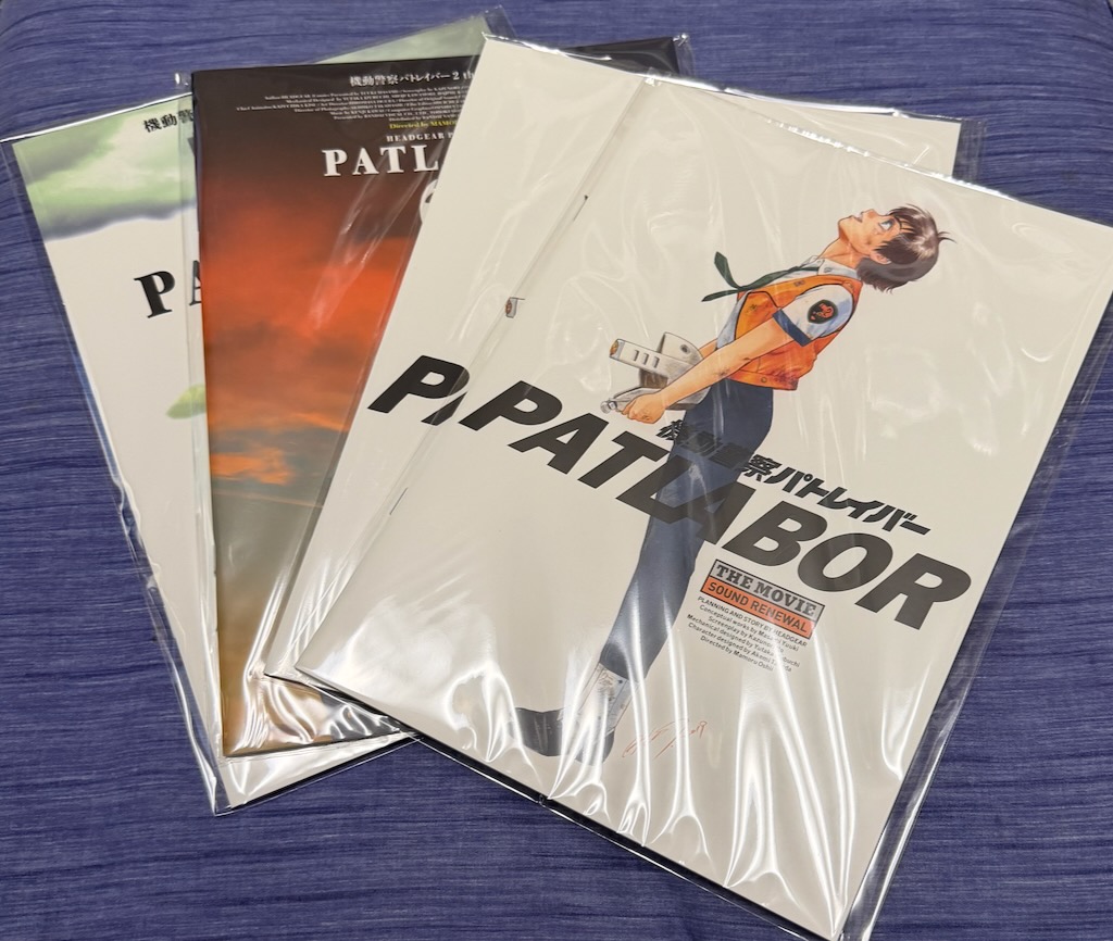 ついでにパンフレットを購入、通常盤の復刻版とサウンドリニューアル版、それぞれ、パトレイバーとパトレイバー2で合計4冊4630円。まあ、36年前にパンフを買った記憶がないから・・・買えたのはありがたい。