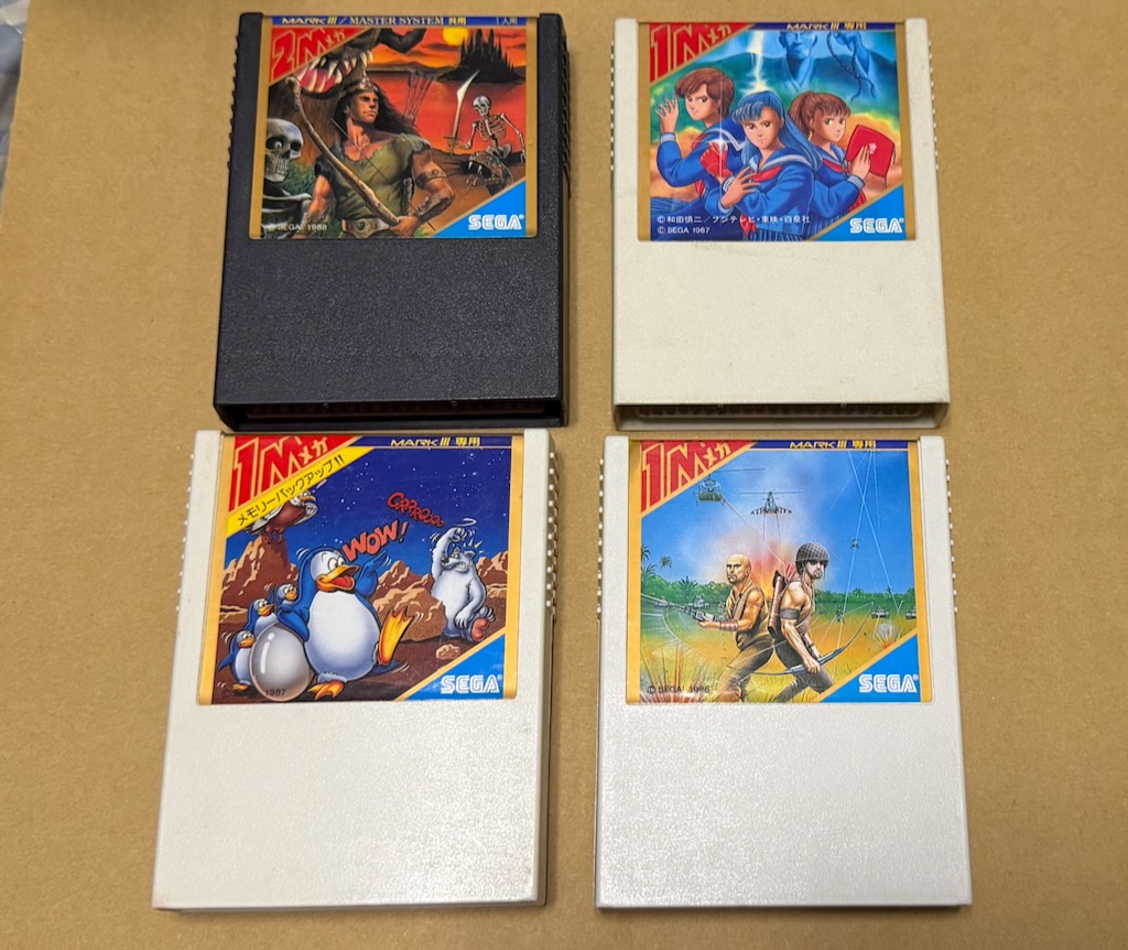 まずはセガ・マークIII用ゲーム、ロード・オブ・ソード、スケバン刑事、どきどきペンギンランド、阿修羅の4本。タイムセールで安かった。