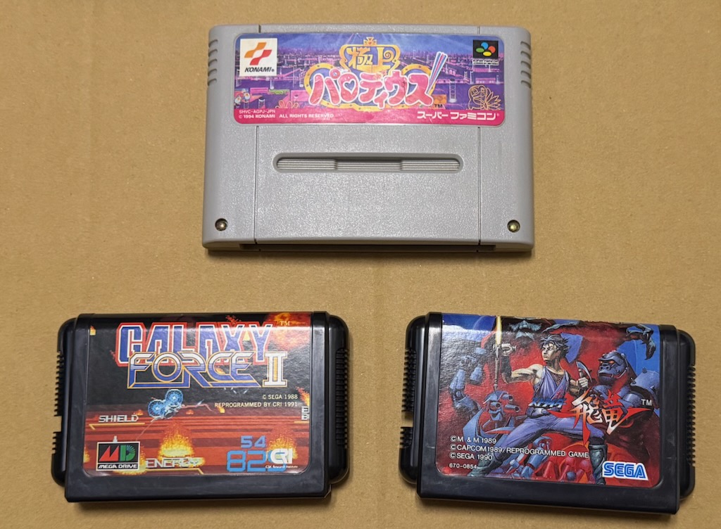 スーパーファミコンの極上パロディウス、そして、メガドライブのギャラクシーフォースII、ストライダー飛竜