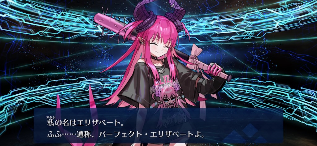 ハロウィンイベントでは、配布のエリザベートが恒例なのだが、今回、星5のガチャ産エリザベートが実装されました。ということでなんとかゲット。直前までのアサシン冠位戴冠戦で貯めた聖晶石を全部放出です。