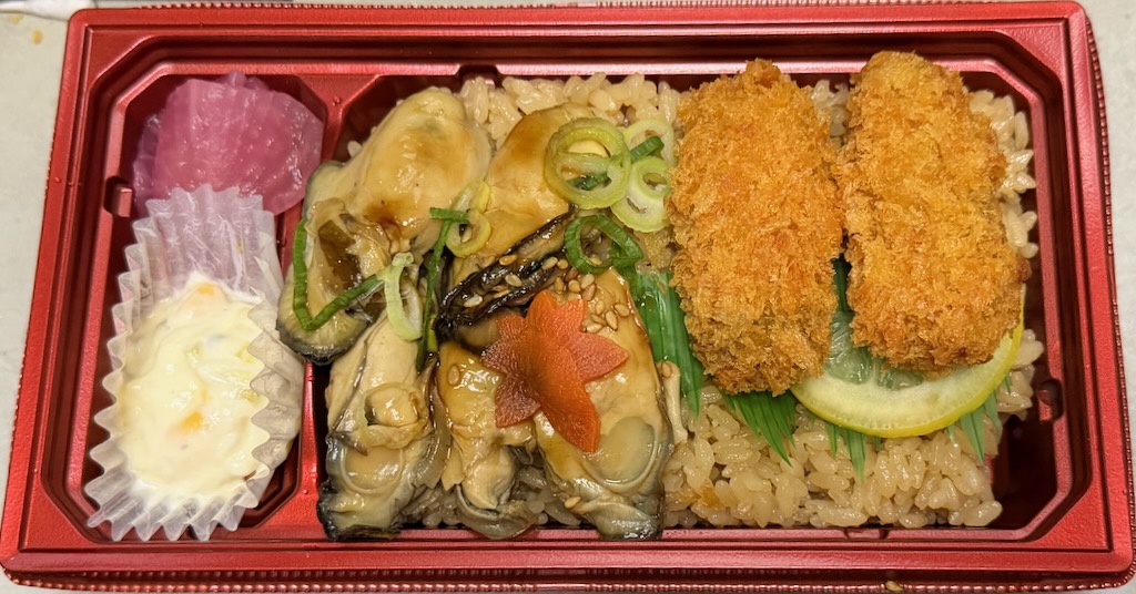 牡蠣食べ比べ重はカキフライ2個と焼きがきが5個で満足度高かったです。