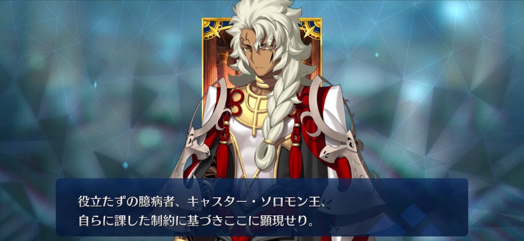 配布で星5のソロモン王をゲット、星5プリテンダーです。まあ、役的に確かにプリテンダーだものね。