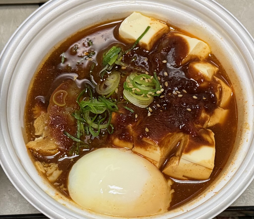 松屋の「鶏のどて煮風鍋」をテイクアウト。ピリ辛の味噌味で大変、ご飯がすすみます。