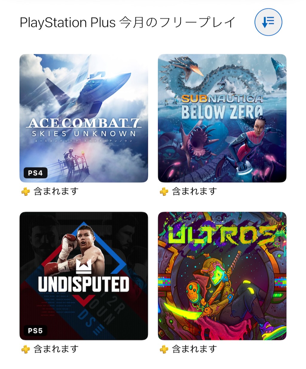 今月はACE COMBAT 7、Subnautica: Below Zero、Undisputed、ULTROSの4本。
