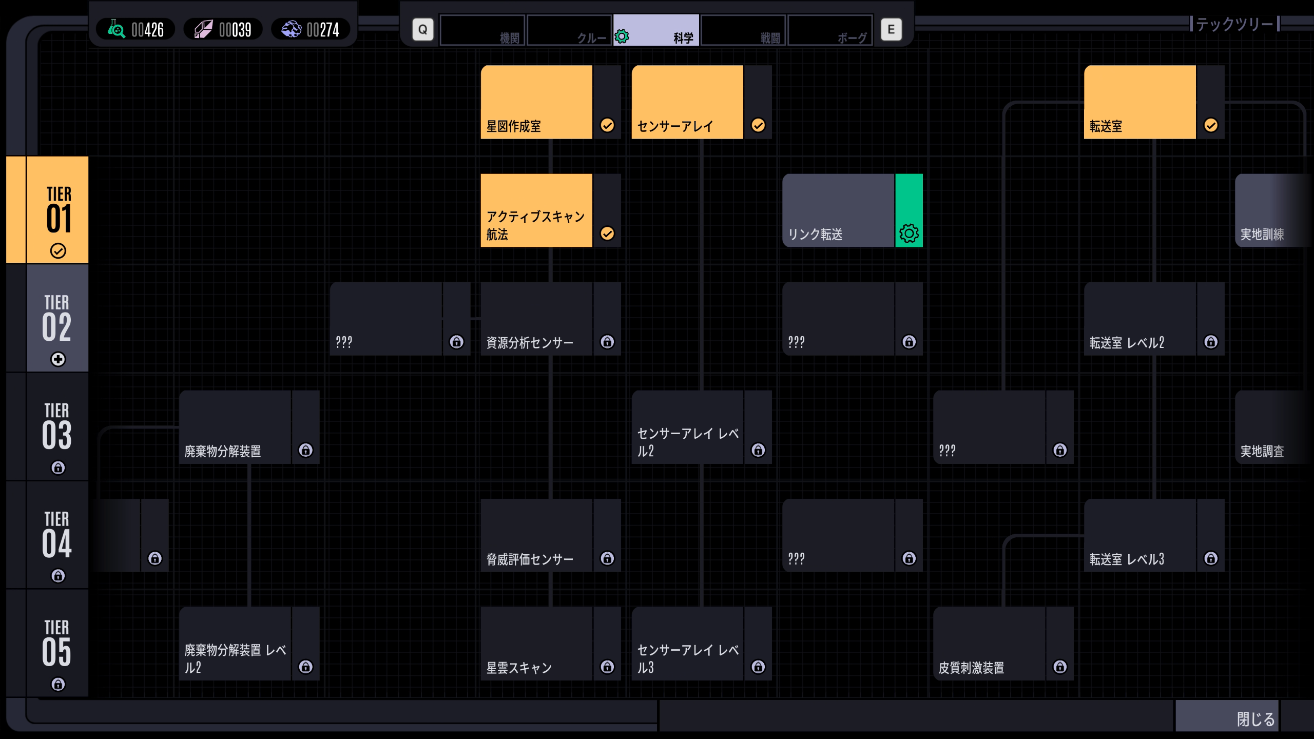 イベントとか進むと開発のスキルツリーが開放され、開発実施(”eXploit”:開発)