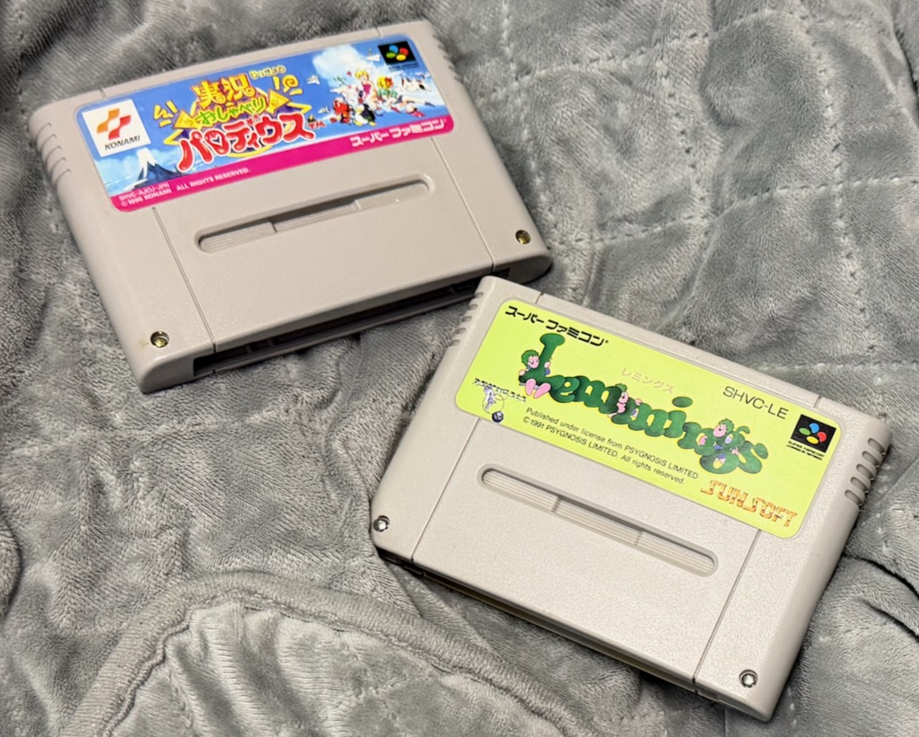 スーパーファミコン用の「実況おしゃべりパロディウス」と「レミングス」が届いた。