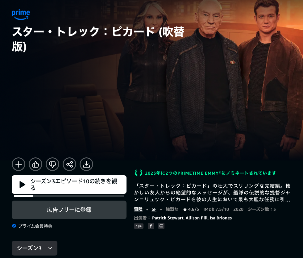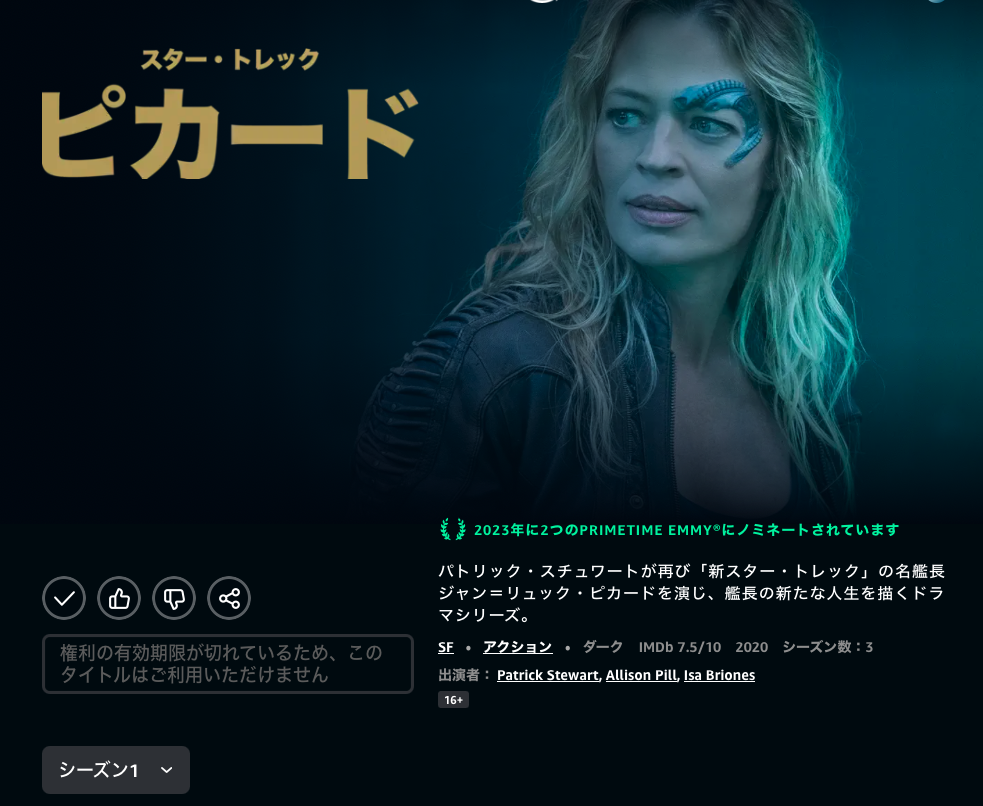 なぜか、ピカードの吹替版のシーズン1だけ観ることができなくなっている。