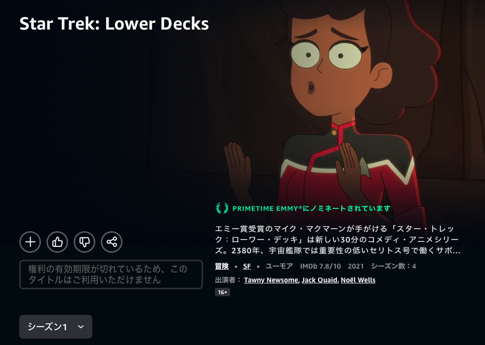 ローワーデッキは「権利の有効期限が切れているため、このタイトルはご利用いただけません」になりますね。全シーズン全滅です。