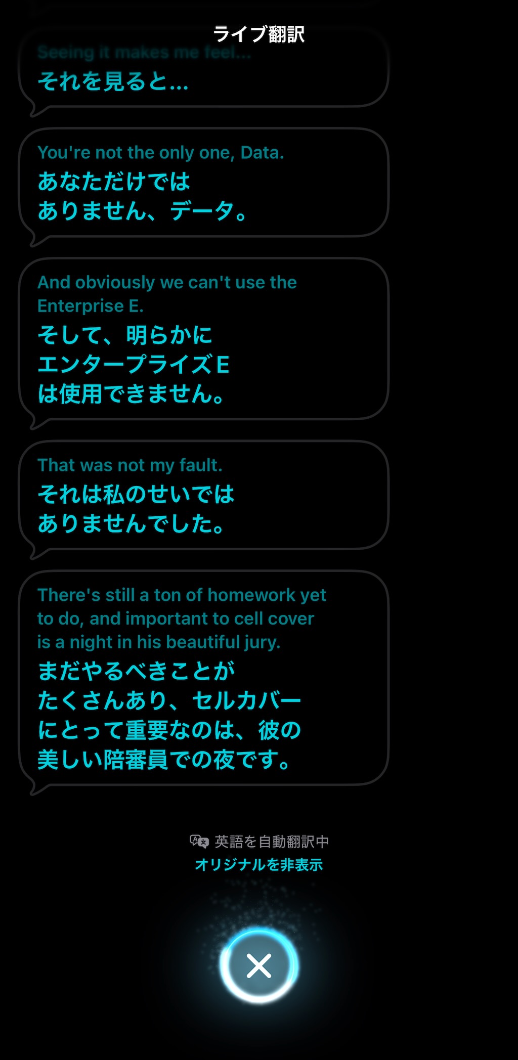 外国人と話したわけではなく、スタートレック:ピカード第9話のエンタープライズDが登場したシーンを字幕版で観てみながら、ライブ翻訳をオンにしてみた。