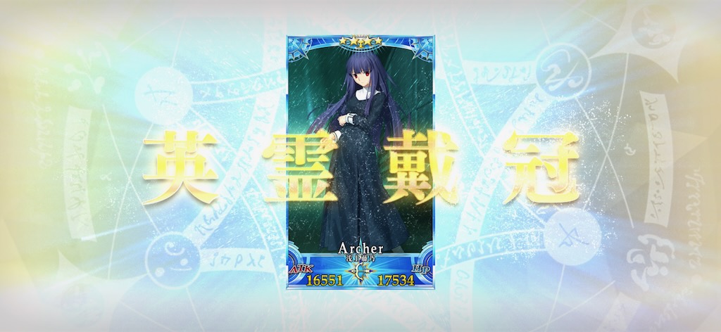 グランドアーチャーは浅上藤乃にしました。とはいえ、コインと種火が足りなくて、レベル110なんですけどね・・・。