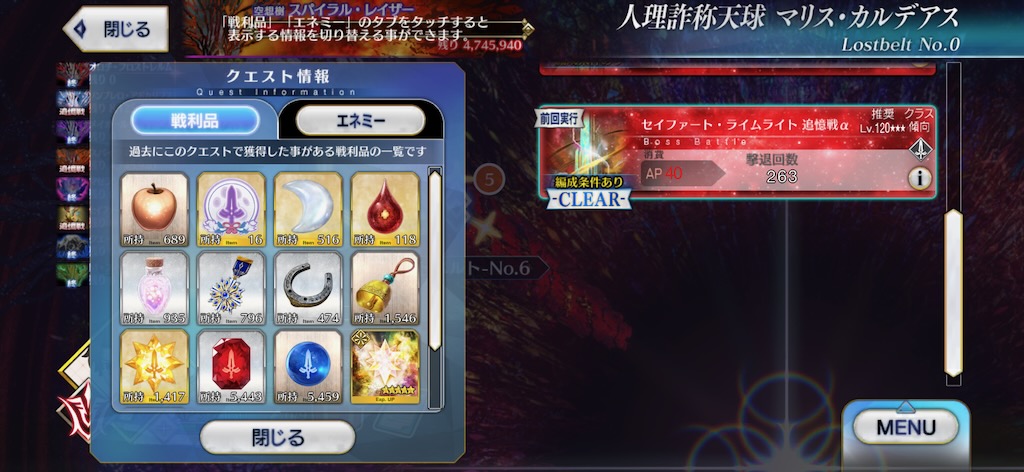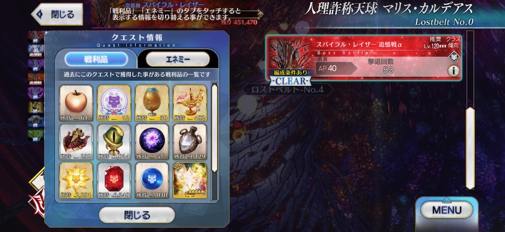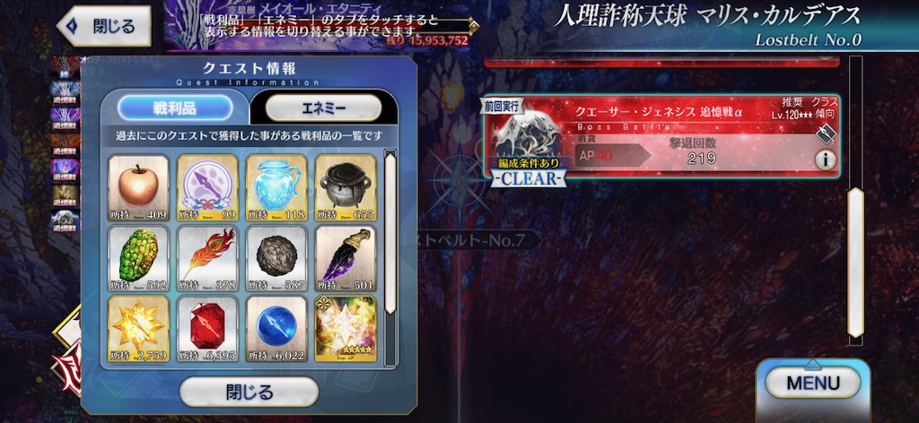メイオールとマゼランはほぼ回れなかった・・・。煌星のカケラは欲しかったんだけどね。ということで先日のオロチも含めて、合計1400回くらい・・・思った以上に回ったな。